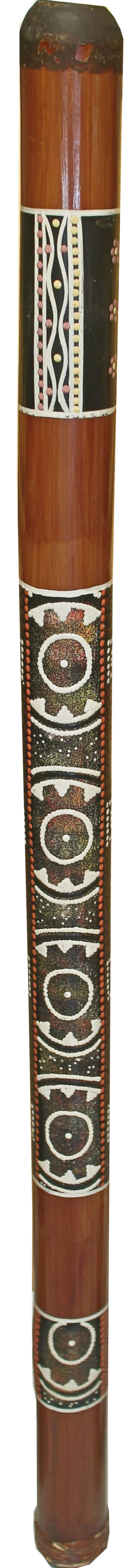 Drum Factory Bamboo Didgeridoo's standard 1.2 meters length, natural tone, and easy playability will please aspiring beginners. This percussion is handmade and painted with beautiful dot patterns.